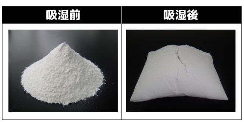 吸湿能力はシリカゲルの約7倍!最大吸収値は自重の210%以上(当社調べ)