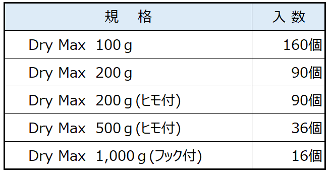 吸湿能力はドライマックスと同じ、シリカゲルの約7倍!